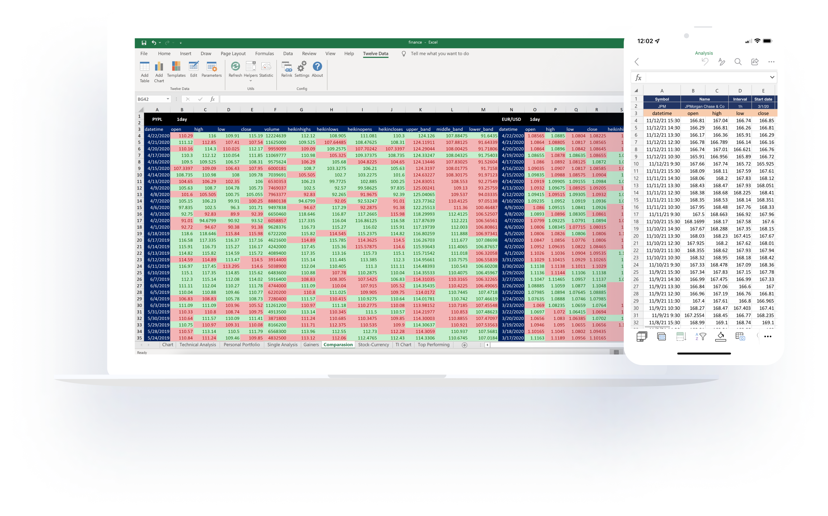 This add-in has tons of features right out of the box, with full coverage of instruments available at Twelve Data: stock, forex, cryptocurrency, ETF, and indices. All market data is updated in real-time, for any interval. With 30+ years of historical values coming from 245 exchanges, financial market analysis is taken to the next level for the Investors, Researchers, Bankers, Enthusiasts, and Traders. You may analyze, compare, track trades, get the current state of a portfolio, and much more.